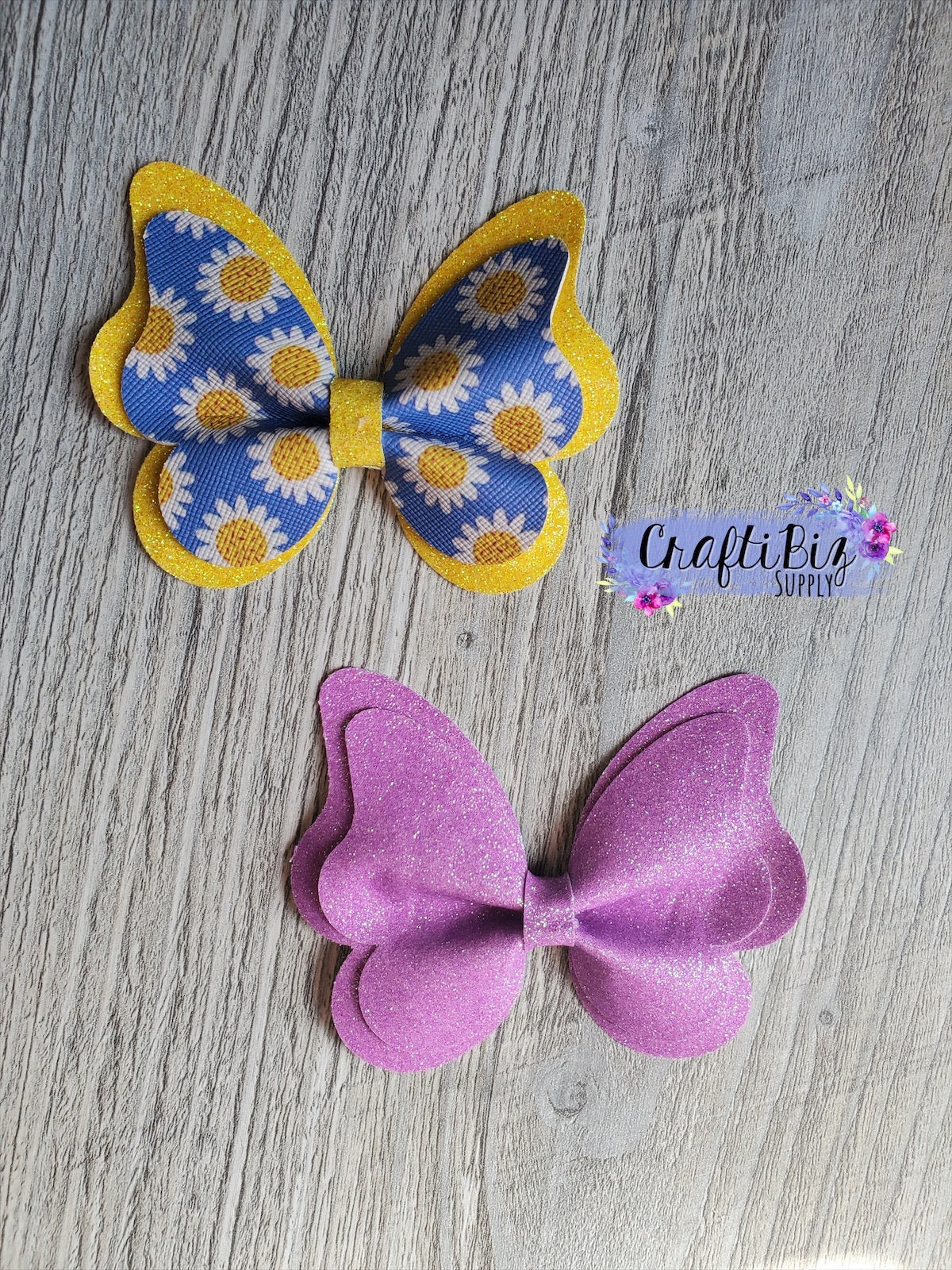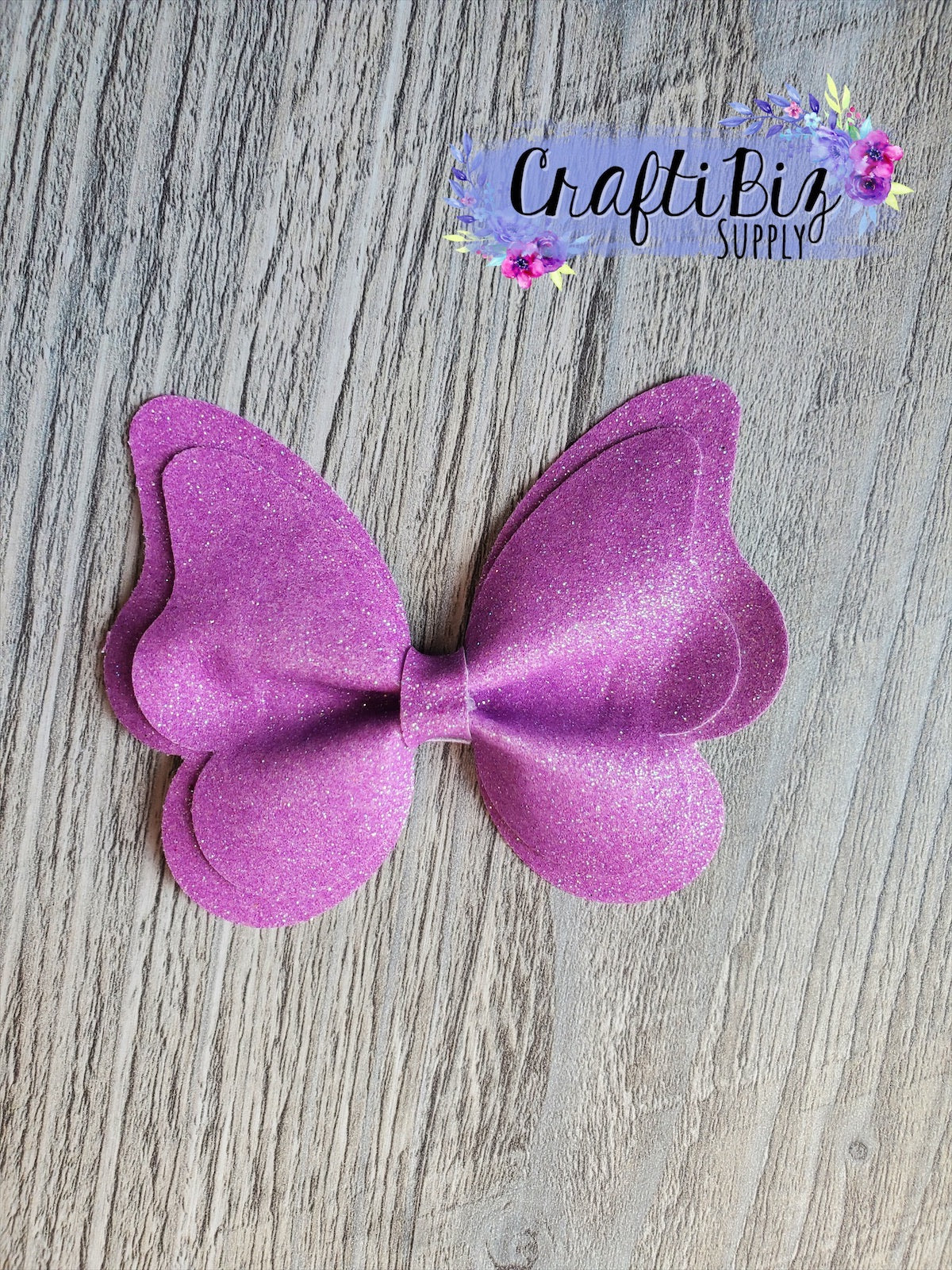 This double layer butterfly bow die makes one (approx) 3.5inch wide by 2.5 inch tall butterfly and one (approx) 3inch wide by 2.25inch tall butterfly